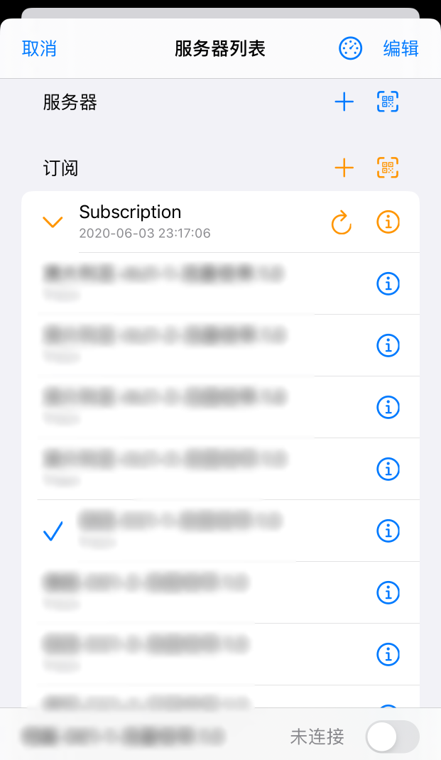订阅右侧的+,在新弹出的窗口中,粘贴订阅链接,点击完成即可完成添加。 - 点击 扫码